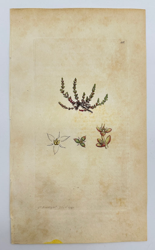 Antique Botanical Print - James Sowerby - Tillaea Muscosa - Remove Capsicum - F1