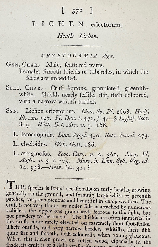 Antique Botanical Print - James Sowerby - Lichen Ericetorum - Heath Lichen - F1