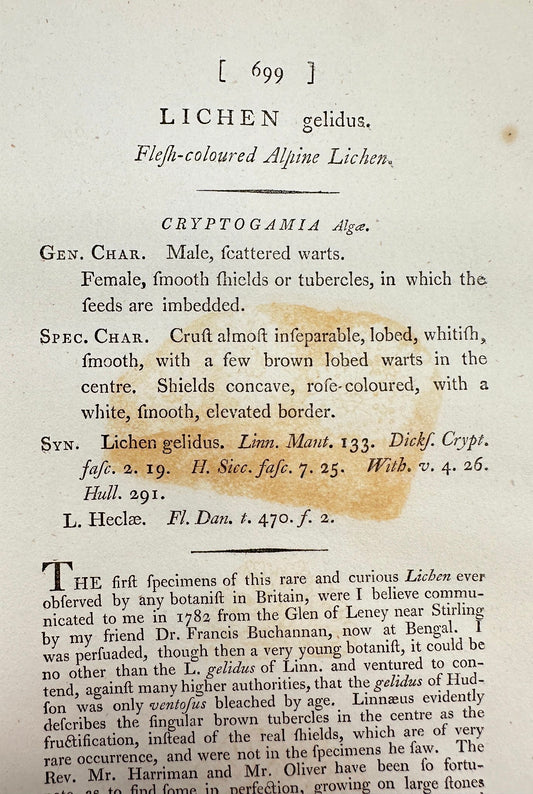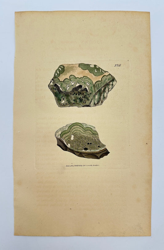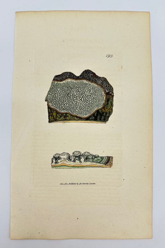 Antique Botanical Print - James Sowerby - Lichen Cinereus - Ashy Lichen - F1
