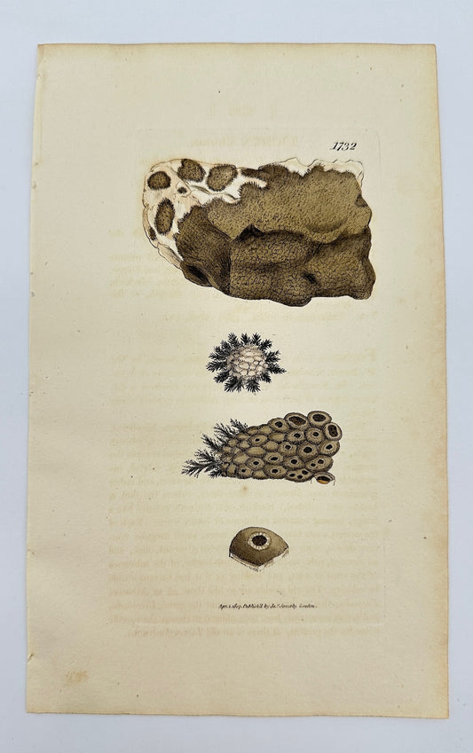 Antique Botanical Print - James Sowerby - Lichen Faccatus - Socket Lichen - F1