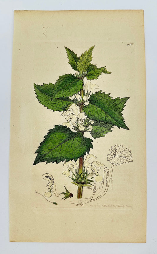Antique Botanical Print - James Sowerby - Lamium Album - White Dead-nettle - F1