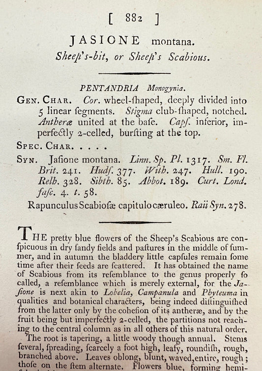 Antique Botanical Print - James Sowerby - Jasione Montana - Sheep's-bit - F1