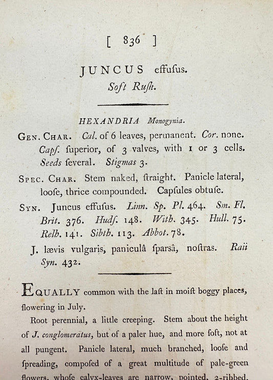 Antique Botanical Print - James Sowerby - Juncus Effusus - Soft Rush - F1