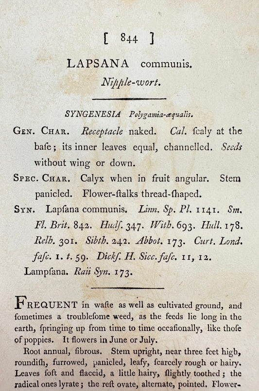 Antique Botanical Print - James Sowerby - Lapsana Communis - Nipple-wort - F1