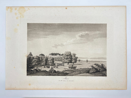 Antique Engraving - Ulrik Thersner - View of Ahlby Sateri in Sweden - E3