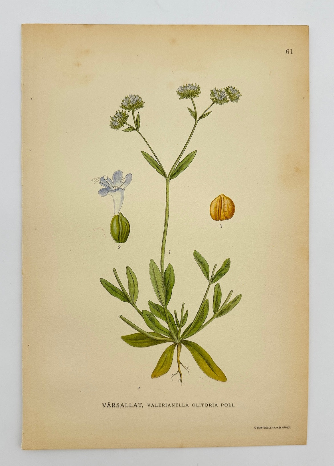 Antique Botanical Print - Carl Lindman - Corn Salad - Valerianella Olitoria - F4