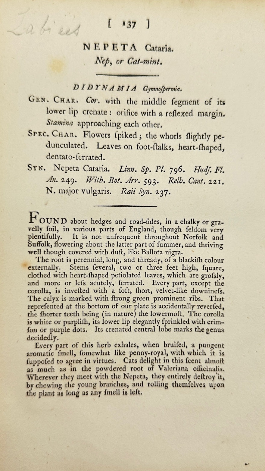 Antique Botanical Print - James Sowerby - Νereta Cataria - English Botany - F1