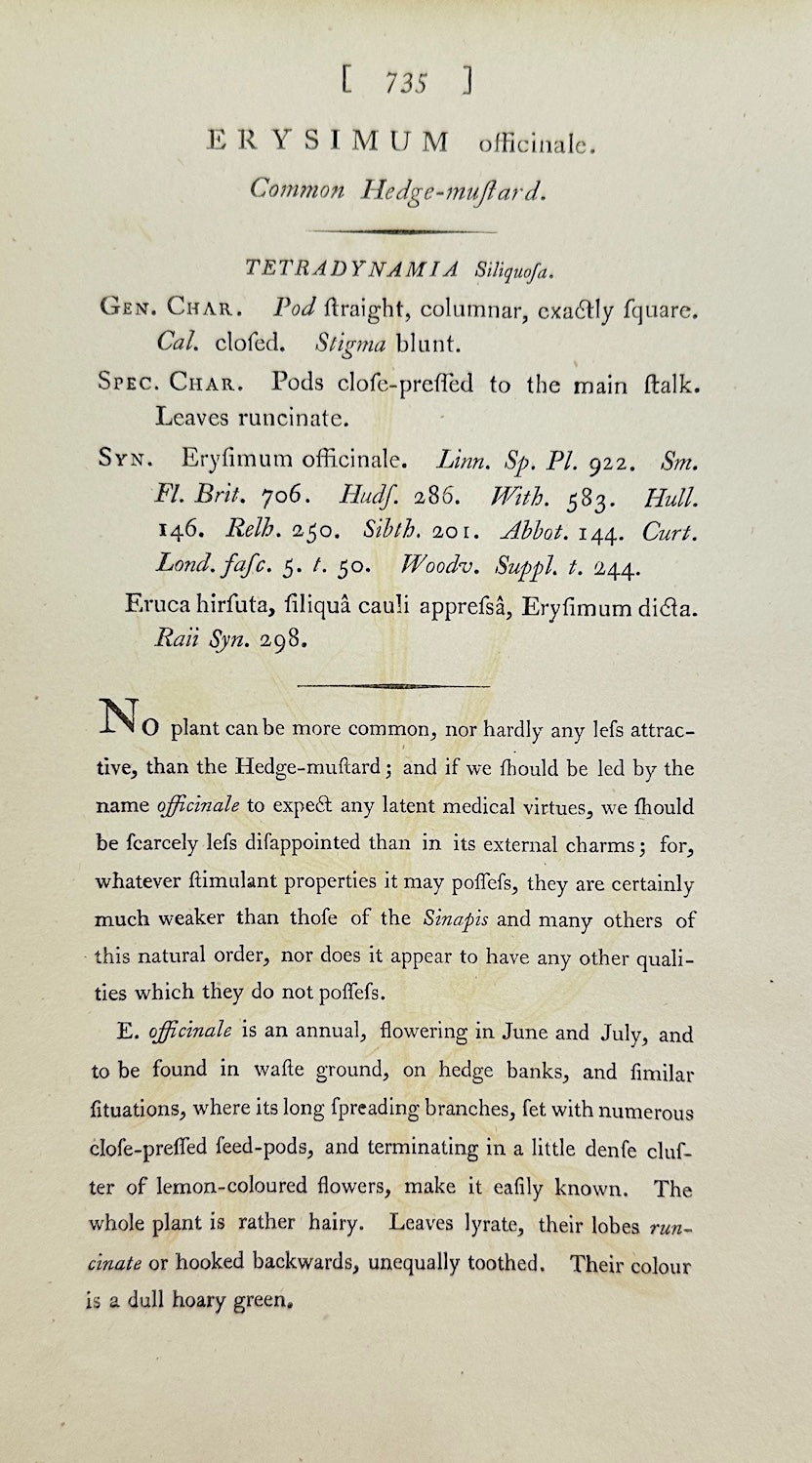 Antique Botanical Print - James Sowerby - Erysimum Officinale - Woundwort - F1