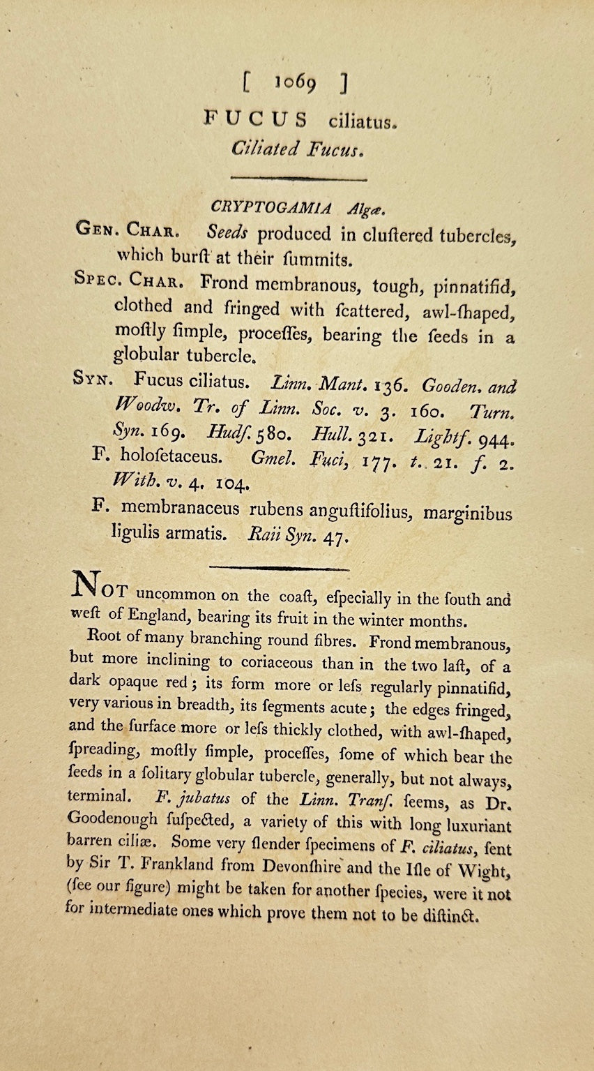 Antique Botanical Print - James Sowerby - Fucus Ciliatus - Ciliated Fucus - F1