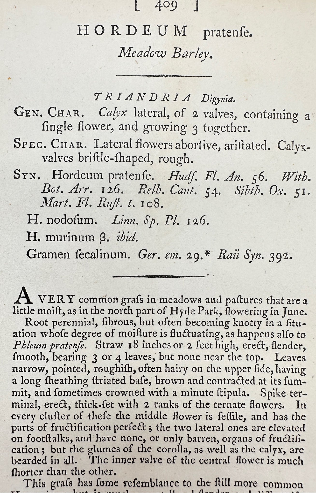 Antique Botanical Print - James Sowerby - Hordeum Pratenſe - Meadow Barley - F1