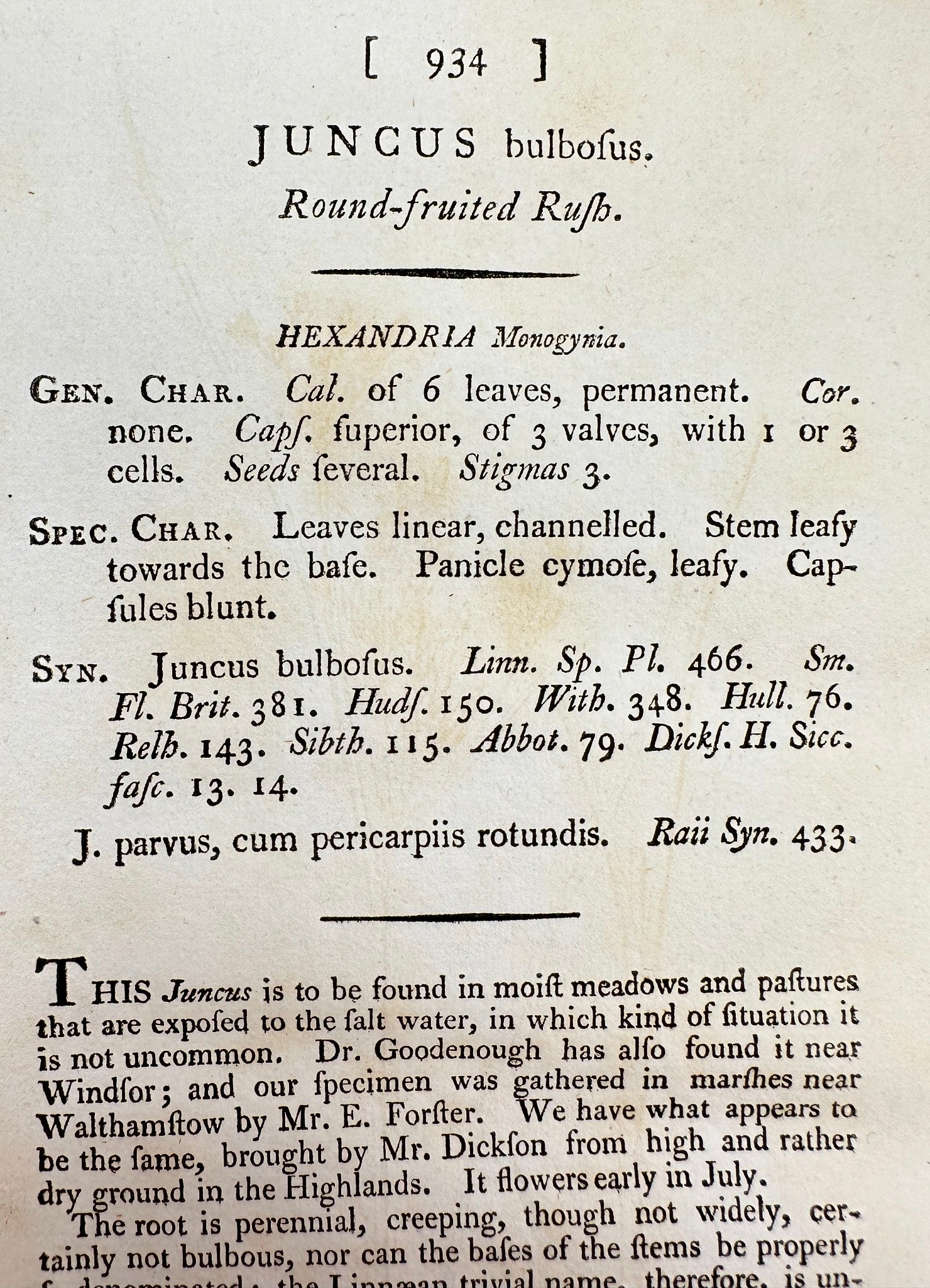 Antique Botanical Print - James Sowerby - Juncus Bulbofus - Bulbous Rush - F1