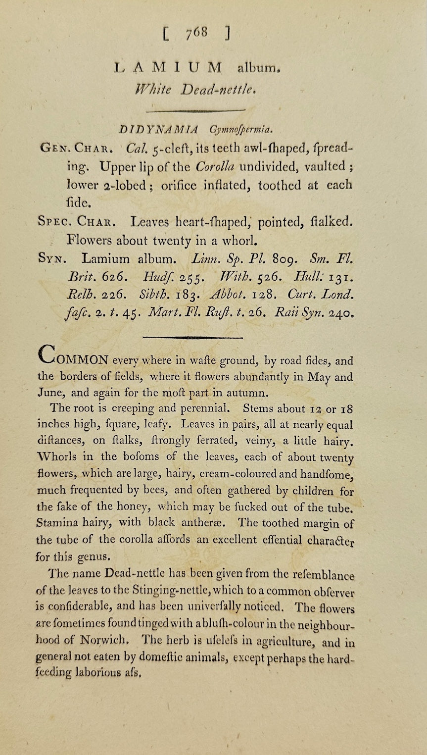 Antique Botanical Print - James Sowerby - Lamium Album - White Dead-nettle - F1