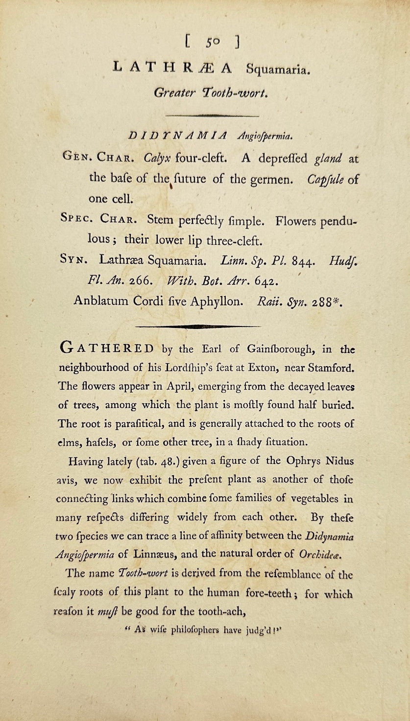 Antique Botanical Print - James Sowerby - Lathraea Squamaria - Toothwort - F1