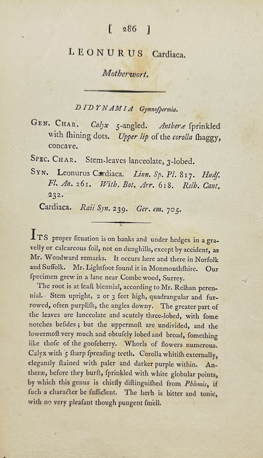 Antique Botanical Print - James Sowerby - Leonurus Cardiaca - Motherwort - F1