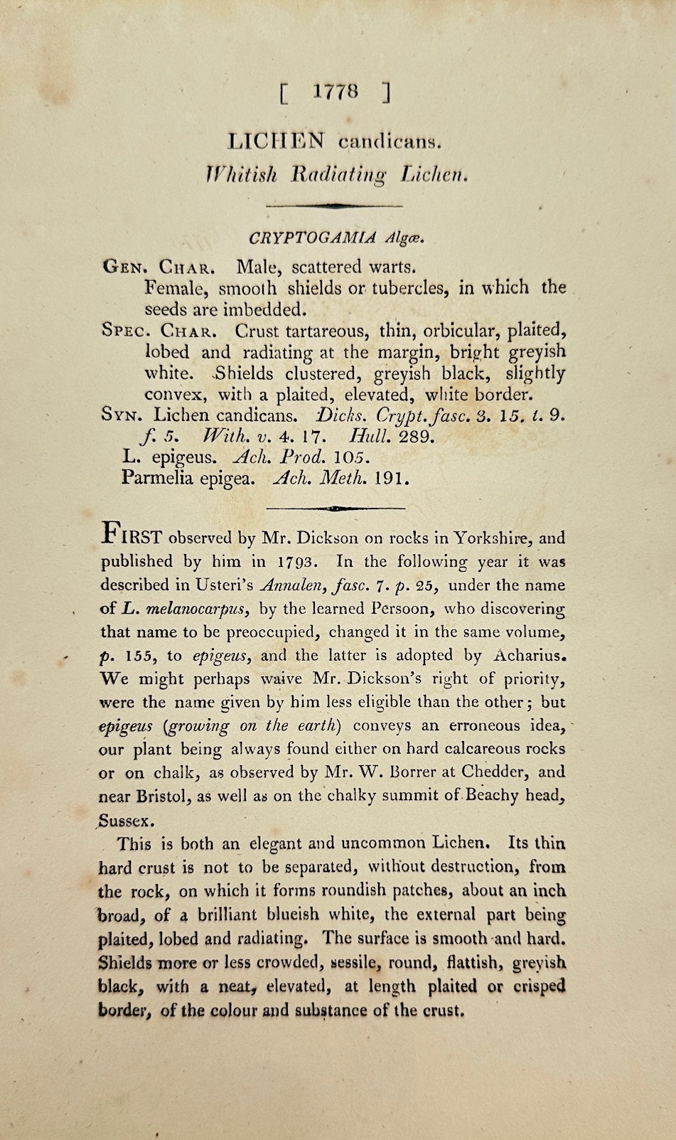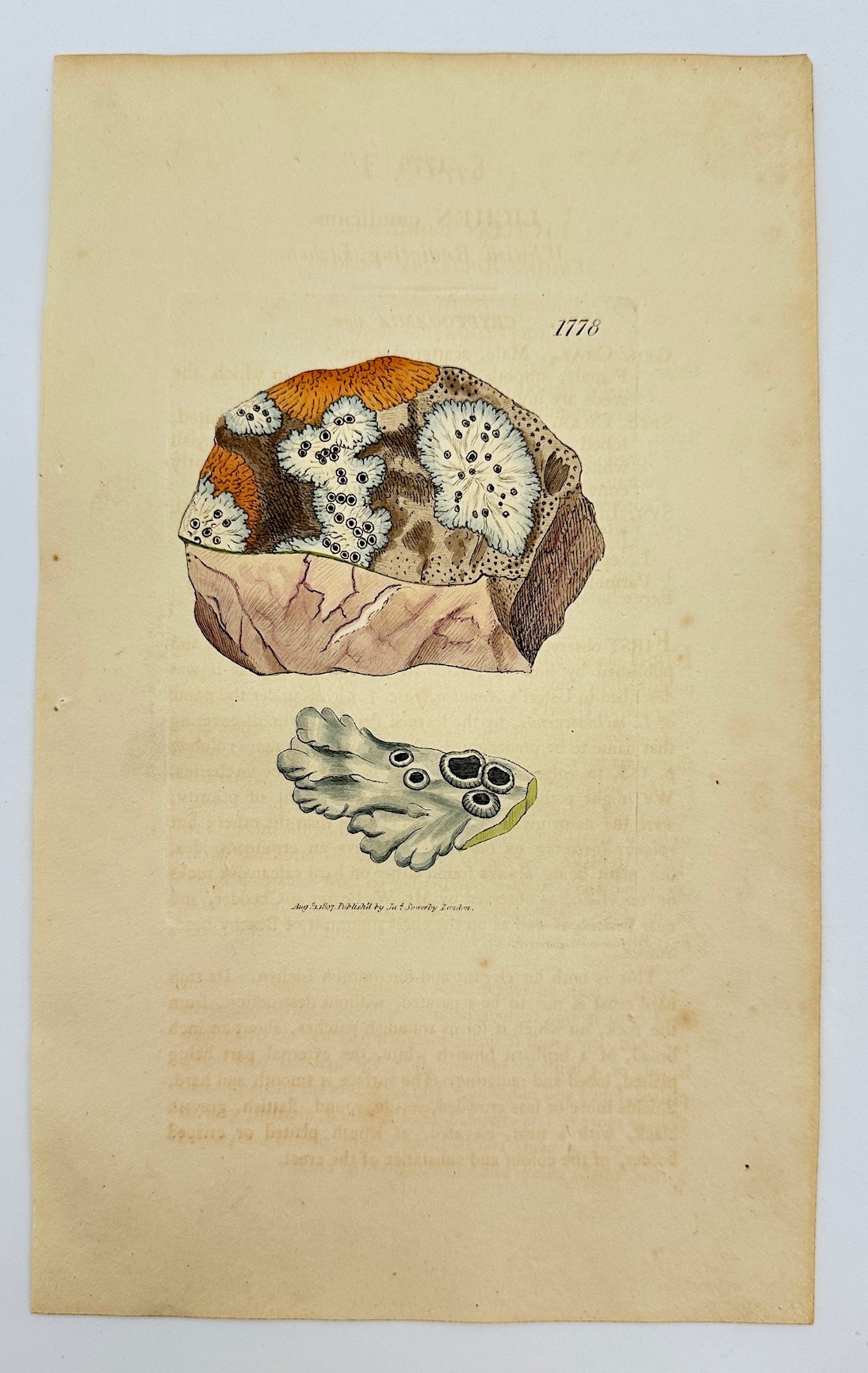 Antique Botanical Print - James Sowerby - Lichen Candicans - White Lichen - F1