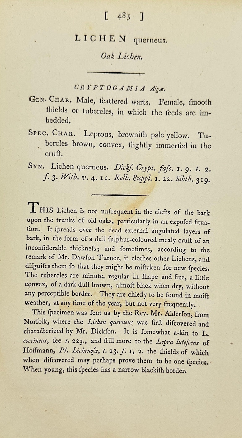 Antique Botanical Print - James Sowerby - Lichen Duercinus - Oak Lichen - F1