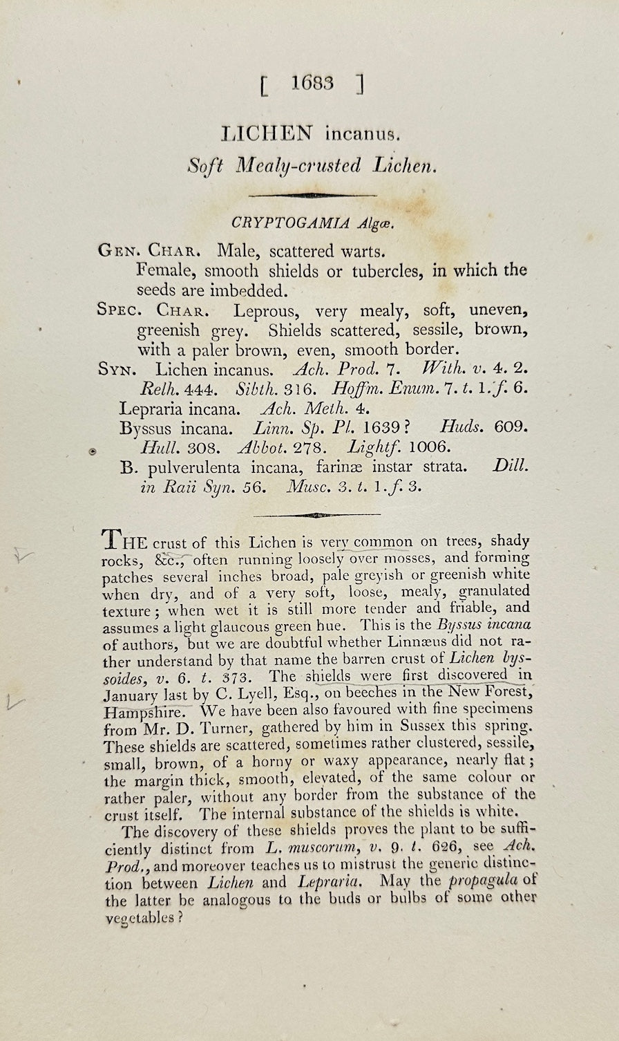 Antique Botanical Print - James Sowerby - Lichen Incanus - Hoary Lichen - F1