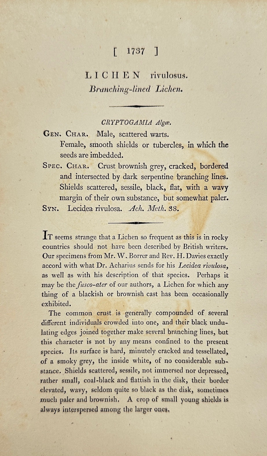 Antique Botanical Print - James Sowerby - Lichen Rivulosus - Rivulet Lichen - F1