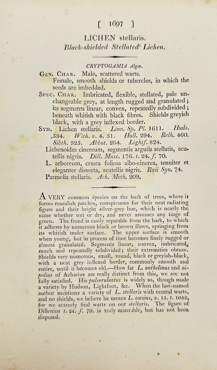Antique Botanical Print - James Sowerby - Lichen Stellaris - Star Lichen - F1