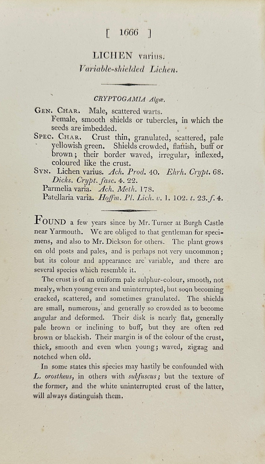 Antique Botanical Print - James Sowerby - Lichen Varius - Varied Lichen - F1