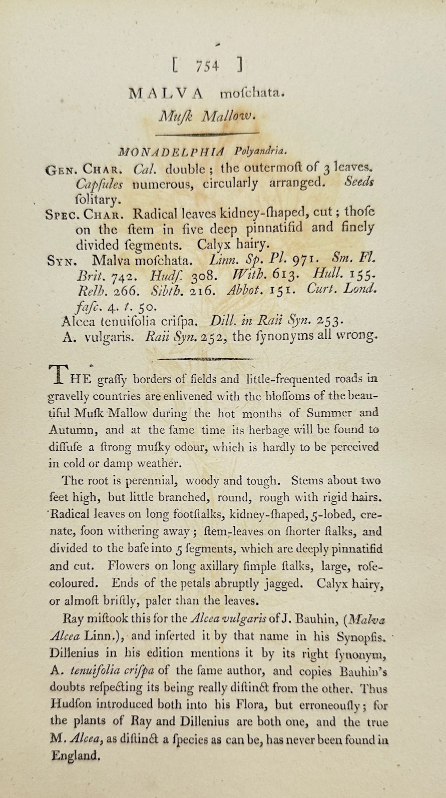 Antique Botanical Print - James Sowerby - Malva Moschata - Musk Mallow - F1