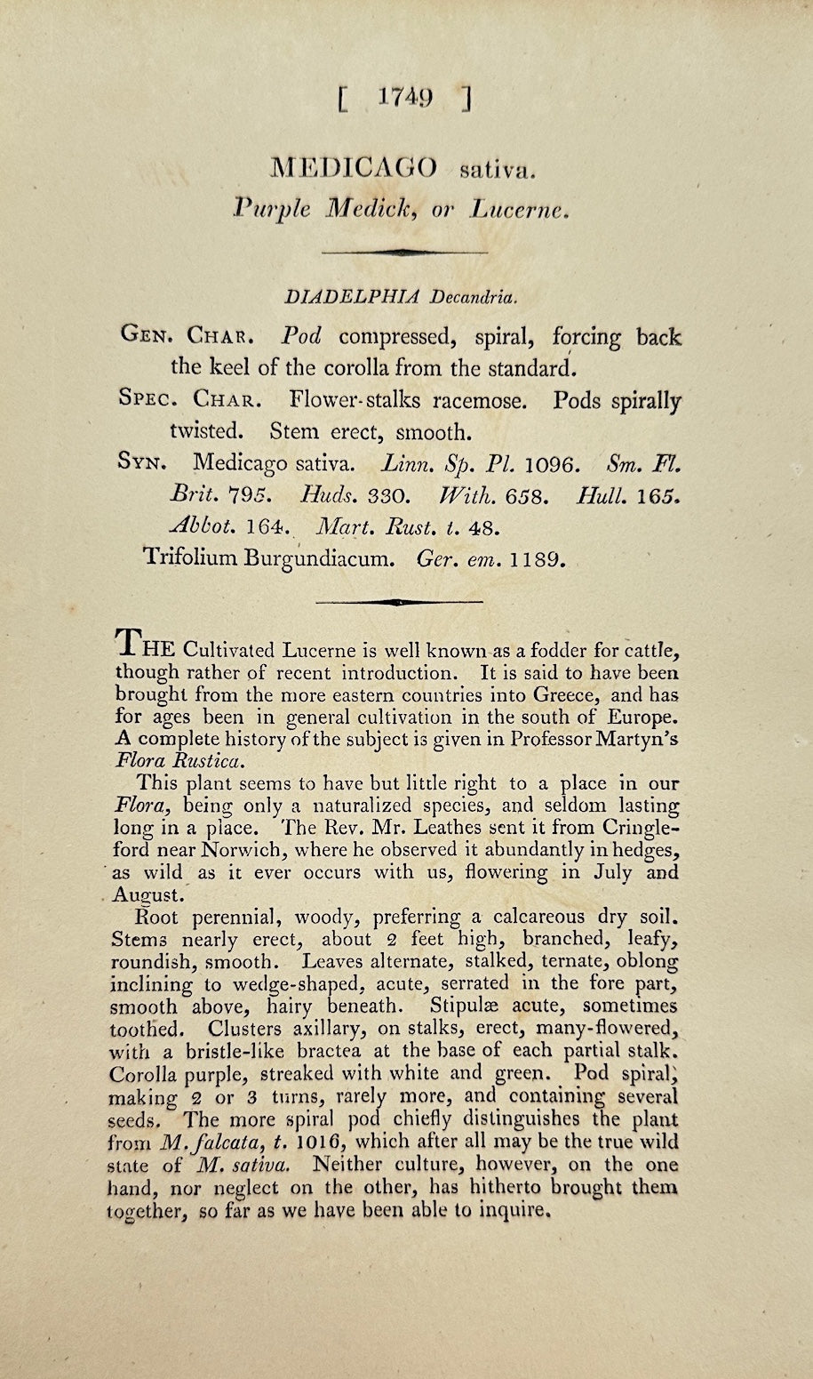 Antique Botanical Print - James Sowerby - Medicago Sativa - Alfalfa - F1