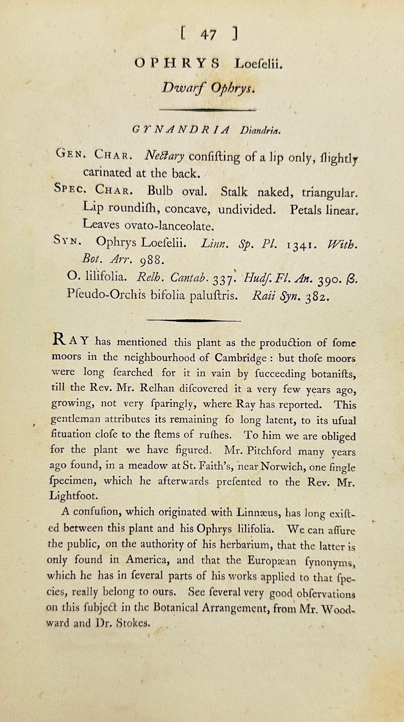 Antique Botanical Print - James Sowerby - Ophrys Loefelii - Loefel's Orchid - F1