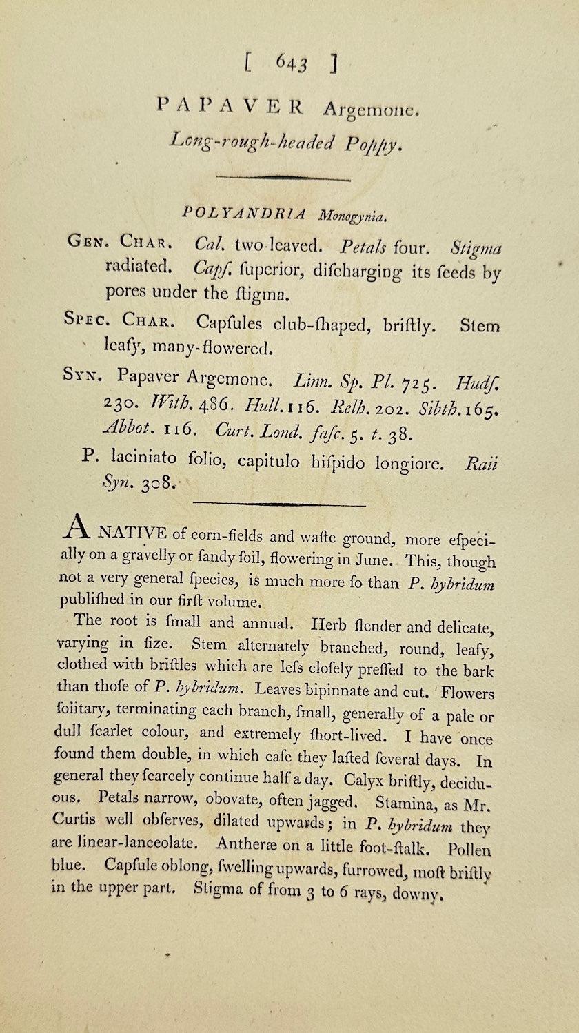 Antique Botanical Print - James Sowerby - Papaver Argemone - Horned Poppy - F1