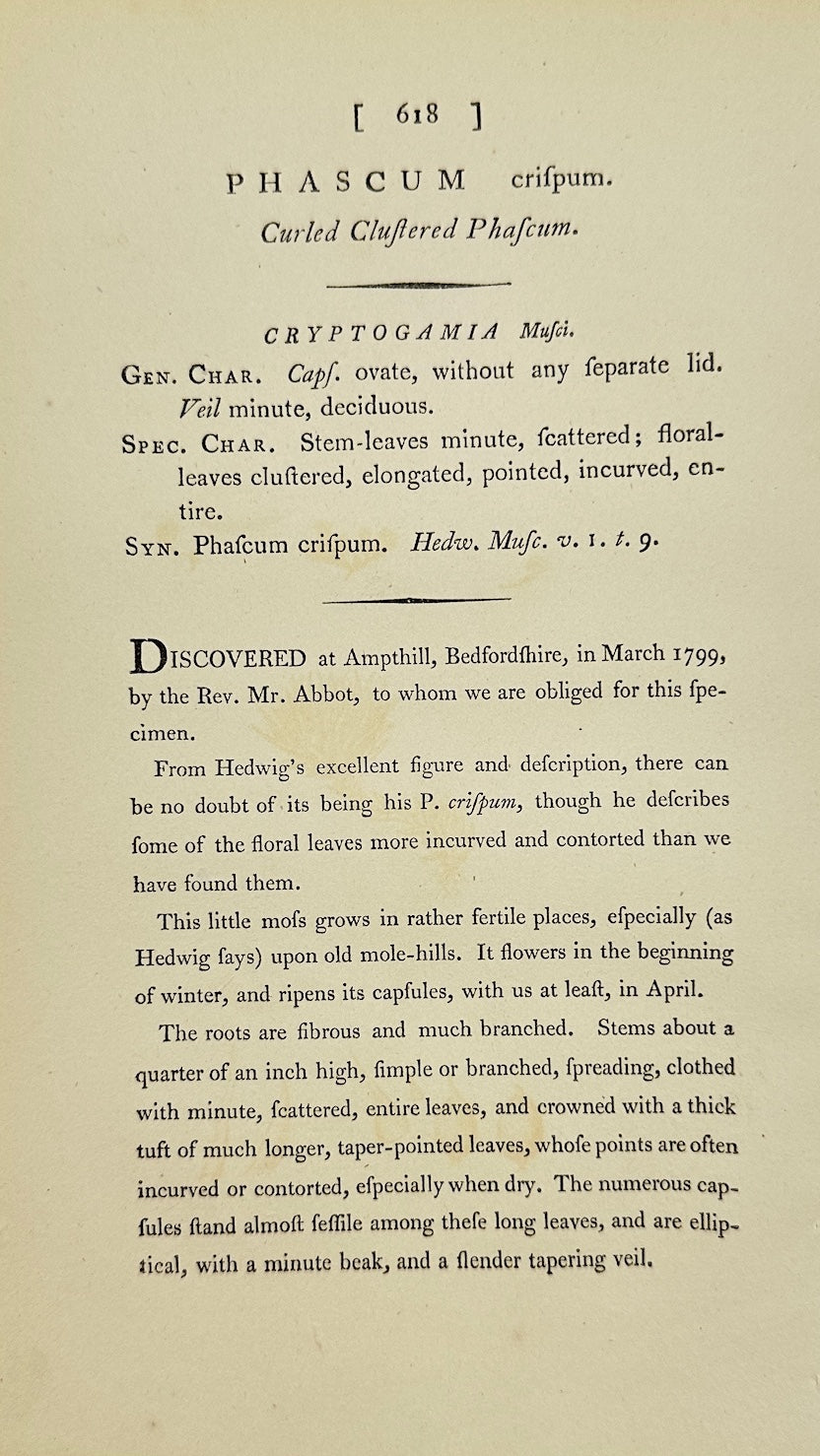 Antique Botanical Print - James Sowerby - Phascum Crispum - Curled Phascum - F1
