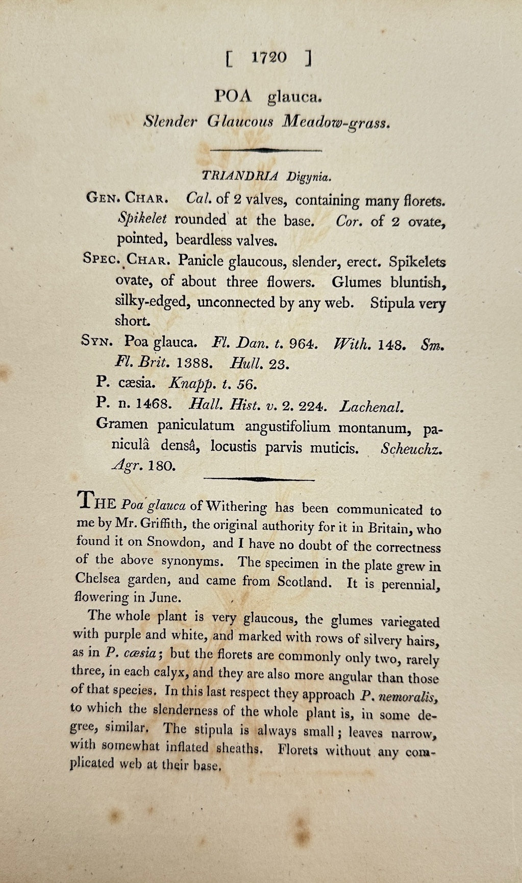 Antique Botanical Print - James Sowerby - Poa Glauca - Glaucous Bluegrass - F1