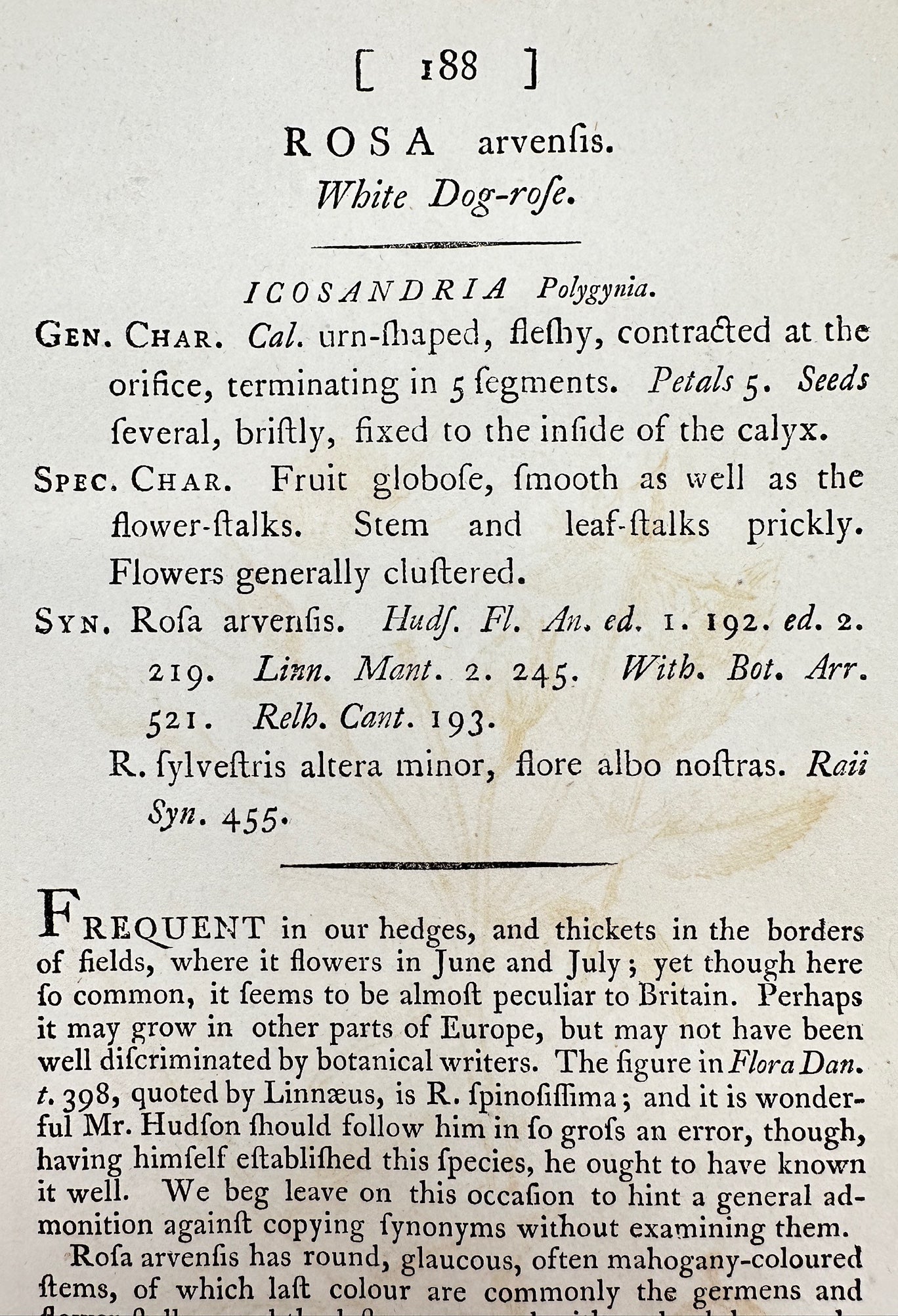 Antique Botanical Print - James Sowerby - Rosa Arvenfis - White Dog-rofe - F1