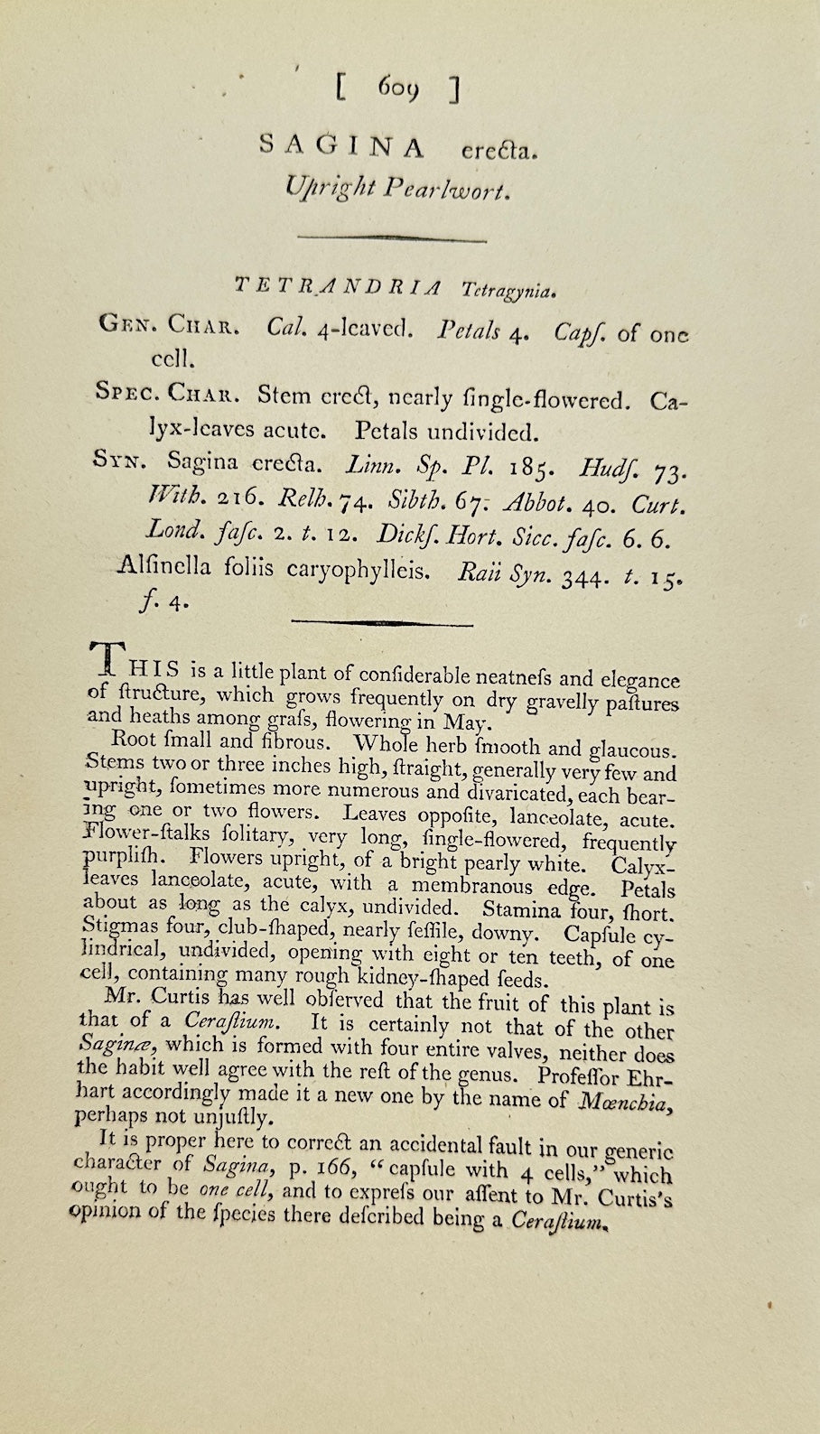 Antique Botanical Print - James Sowerby - Sagina Erecta - Upright Pearlwort - F1