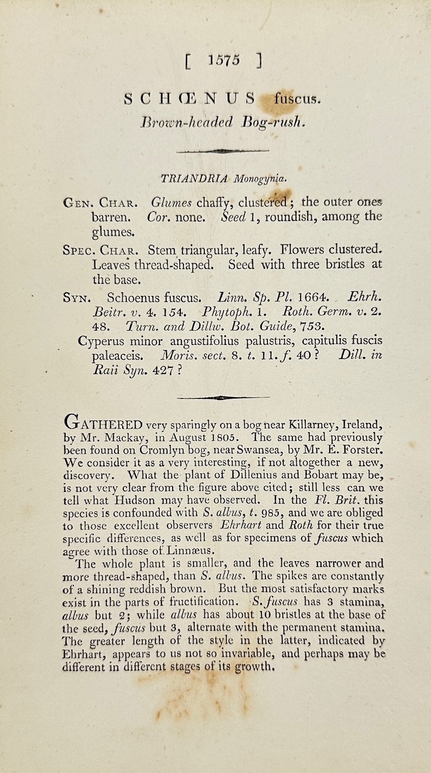 Antique Botanical Print - James Sowerby - Schenus Fuscus - Brown Bog-rush - F1