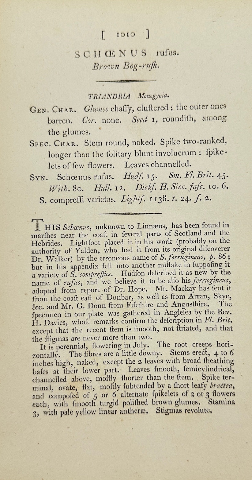 Antique Botanical Print - James Sowerby - Schenus Rufus - Brown Bog-rush - F1