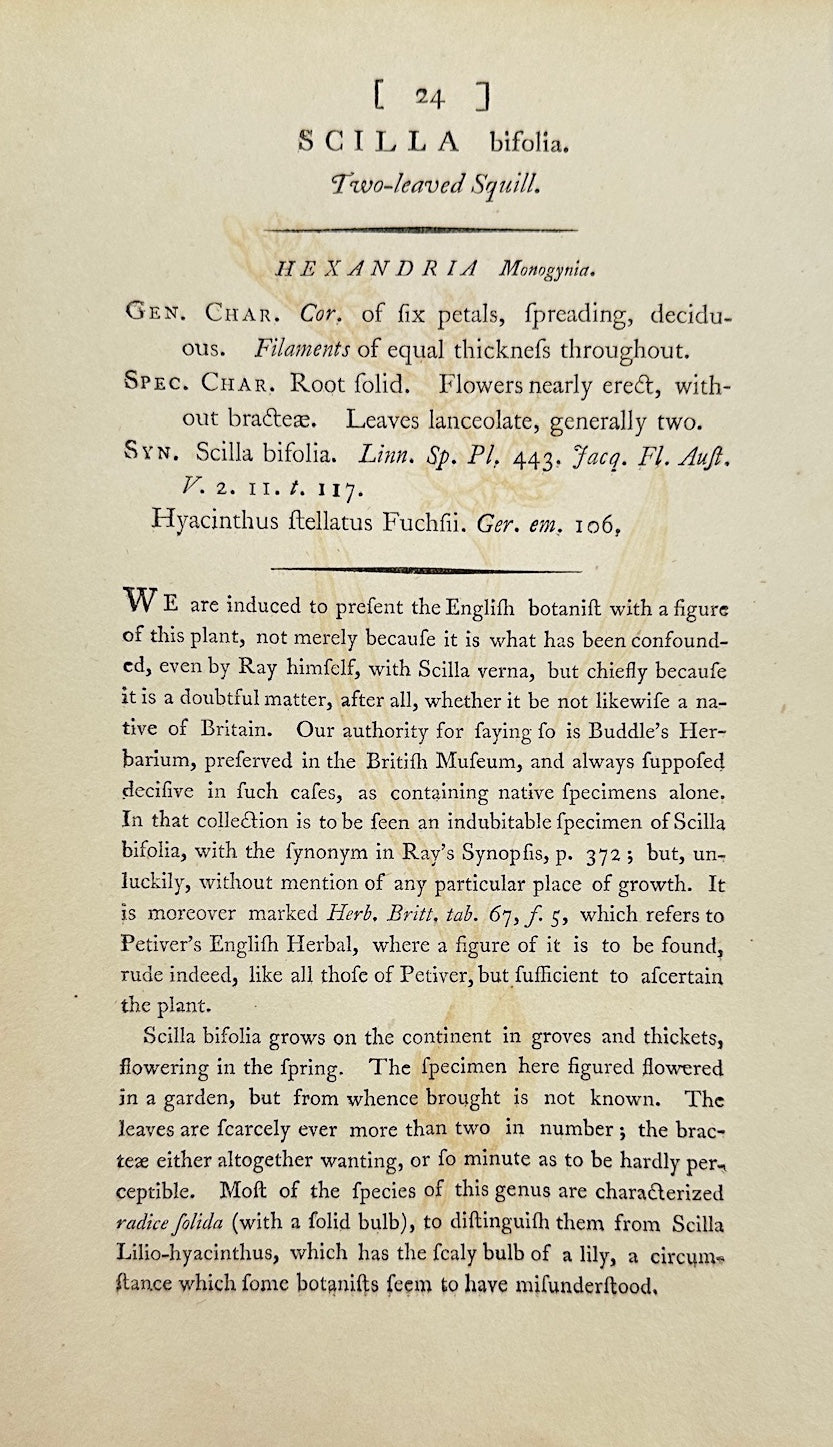 Antique Botanical Print - James Sowerby - Scilla Bifolia - Two-leaf Squill - F1