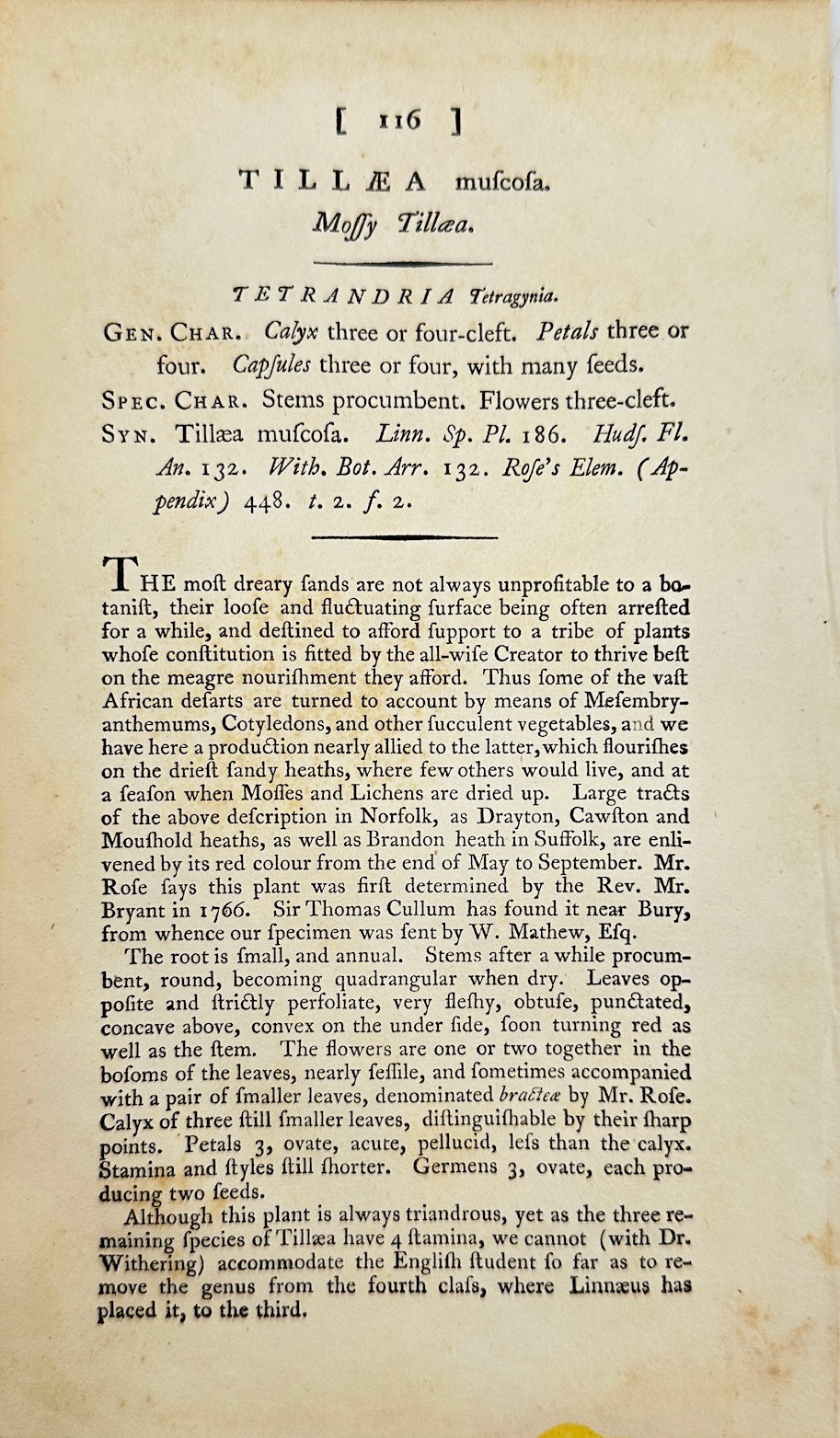 Antique Botanical Print - James Sowerby - Tillaea Muscosa - Remove Capsicum - F1