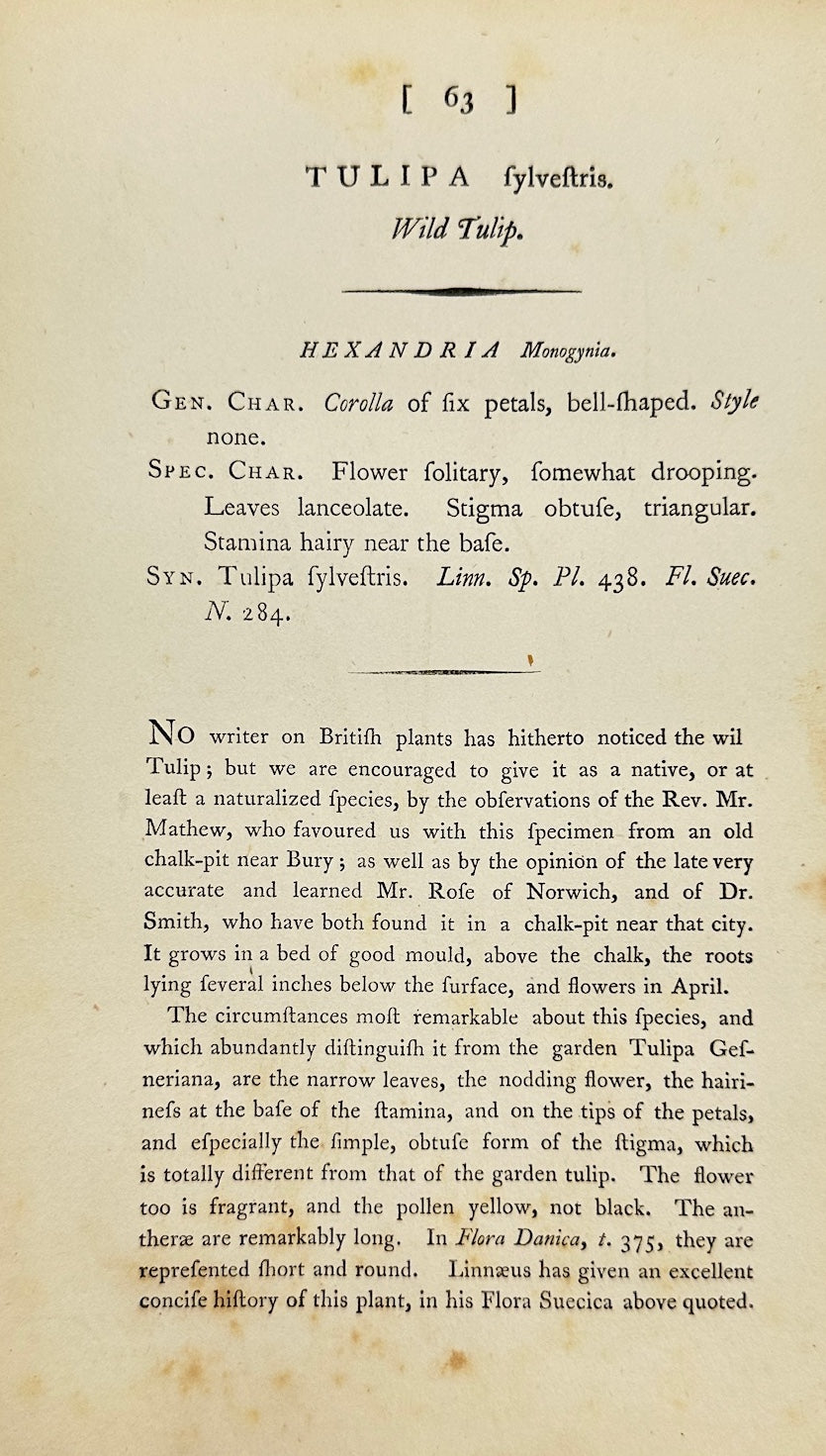 Antique Botanical Print - James Sowerby - Tulipa Sylvestris - Wild Tulip - F1