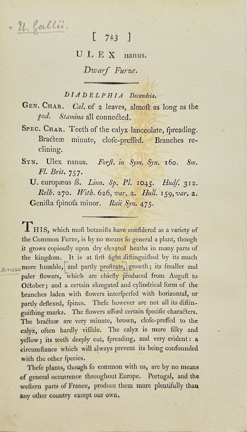 Antique Botanical Print - James Sowerby - Ulex Nanus - Dwarf Furze - F1