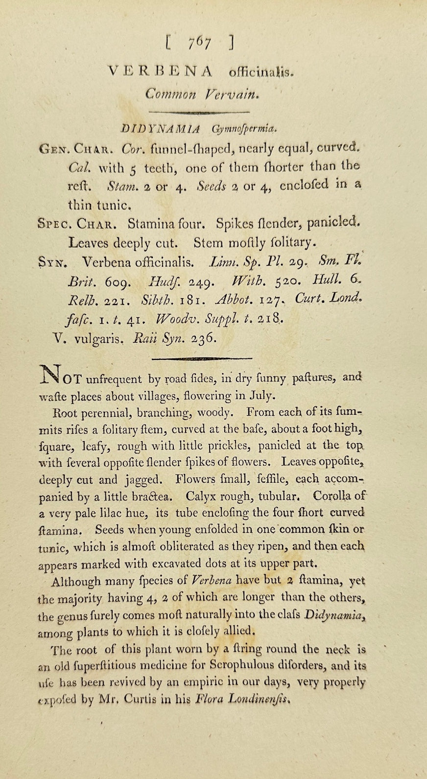 Antique Botanical Print - James Sowerby - Verbena Officinalis - Vervain - F1