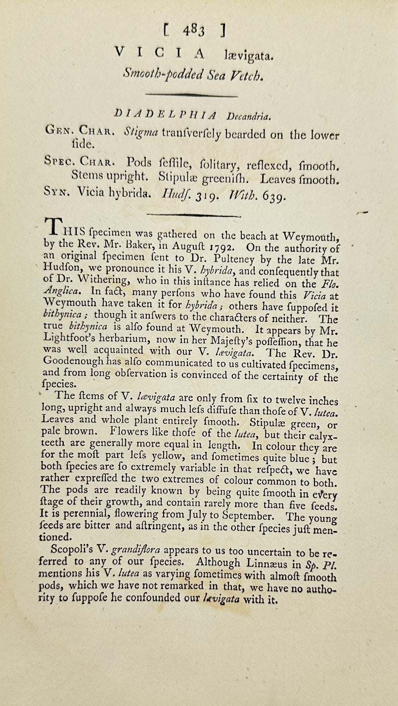 Antique Botanical Print - James Sowerby - Vicia Laevigata - Smooth Vetch - F1