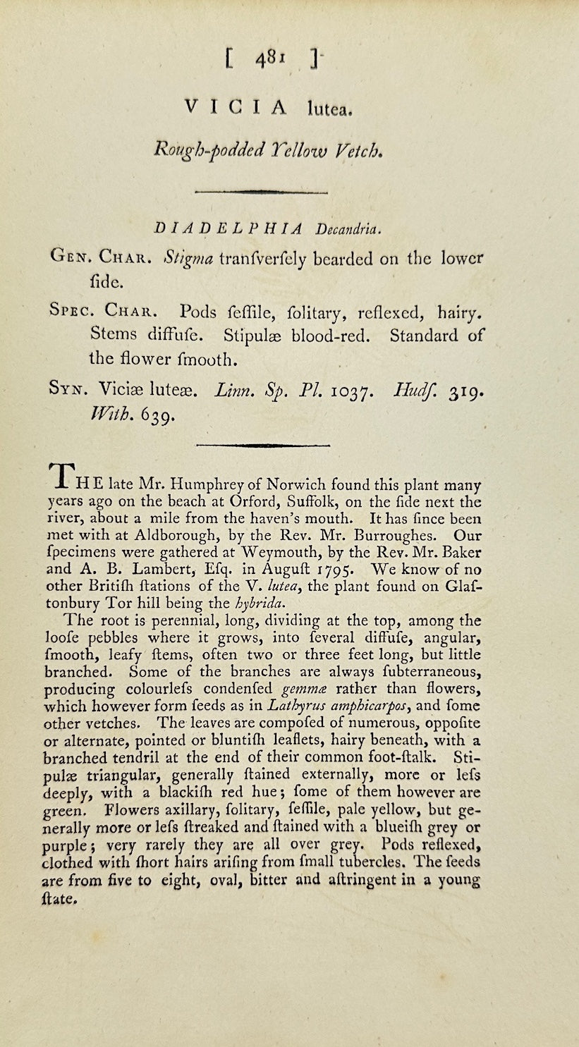 Antique Botanical Print - James Sowerby - Vicia Lutea - Yellow Vetch - F1