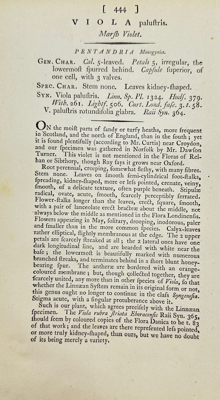 Antique Botanical Print - James Sowerby - Viola Palustris - Marsh Violet - F1