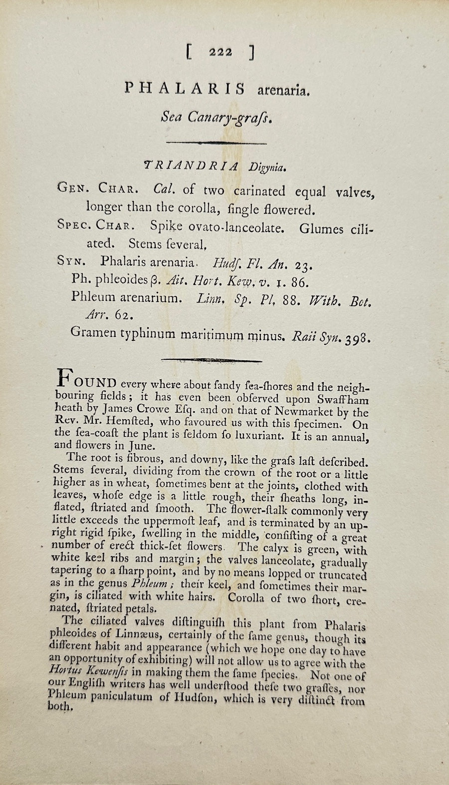 Antique Botanical Print - Sowerby - Phalaris Arenaria - Sand Canary Grass - F1