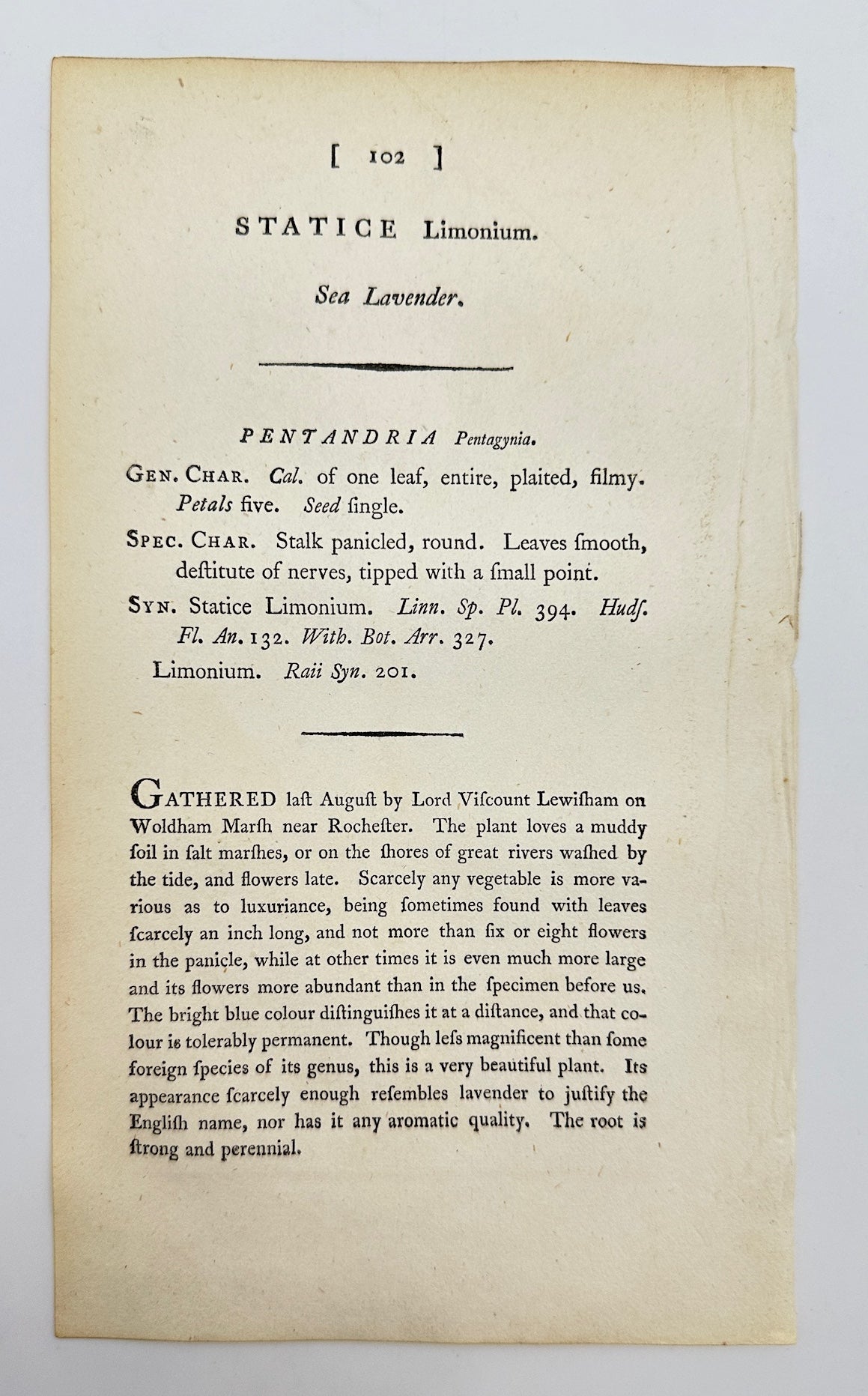 Antique Botanical Print - Sowerby - Statice Limonium - Sea Lavender - F1