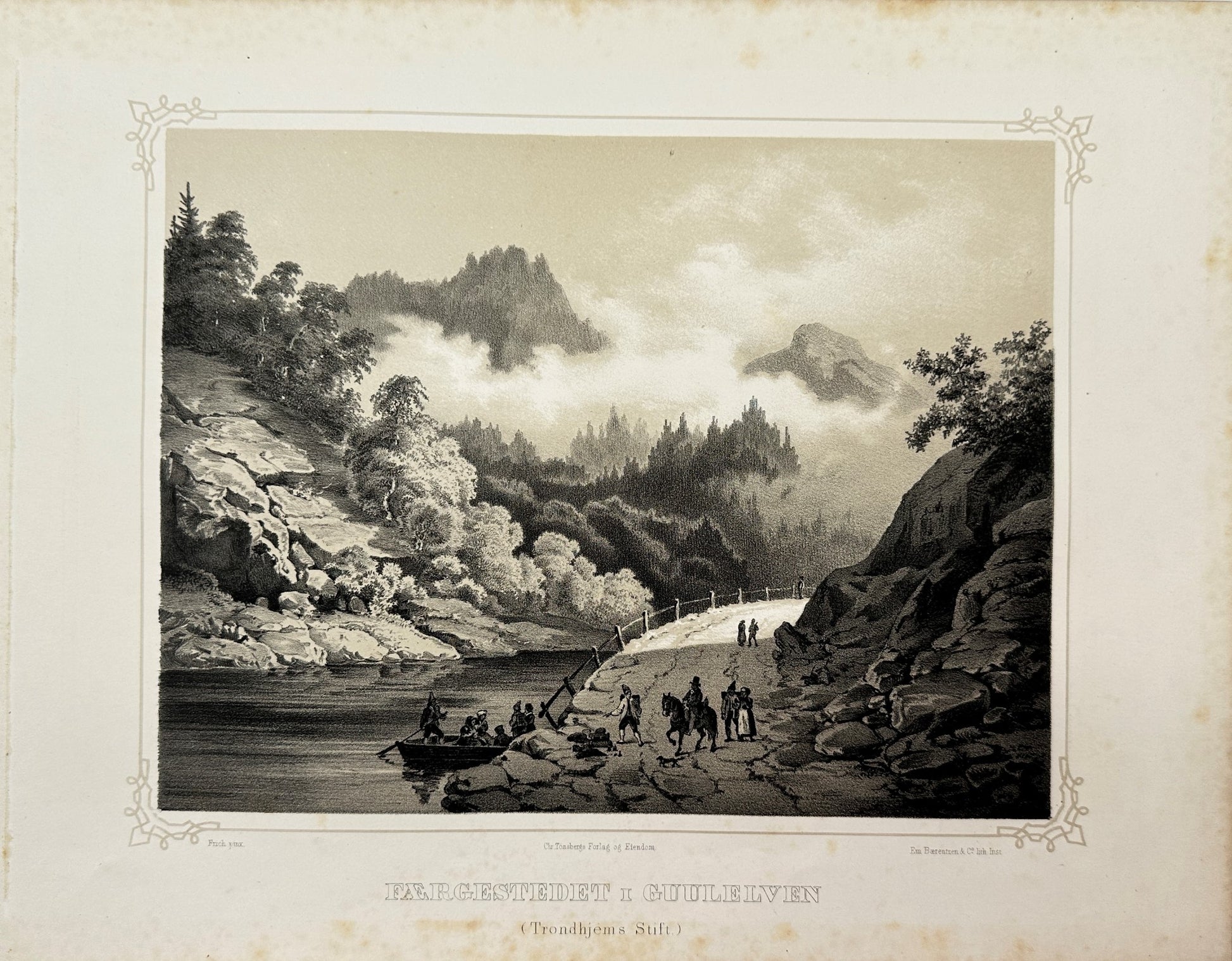 This beautiful lithography originates from ”Norge fremstillet i Tegninger" (Norway made in drawings). The work was published by Christian Tønsberg in Kristiania (Norway), 1863.