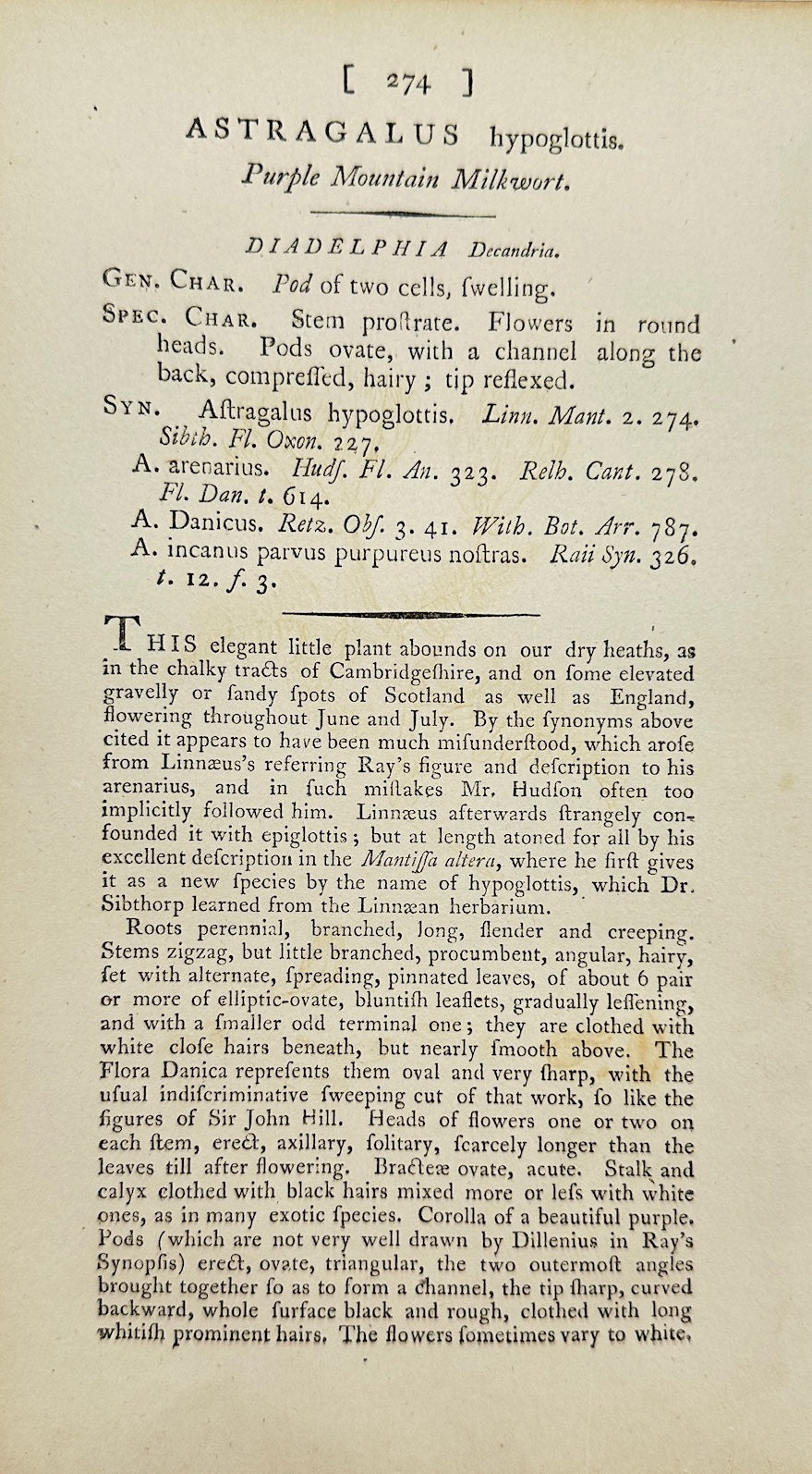 Antique Print - James Sowerby - Astragalus Hypoglottis - Yellow Milkvetch - F1