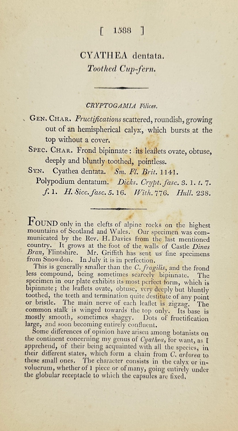 Antique Print - James Sowerby - Cyathea Dentata - Toothed Cup-fern - F1