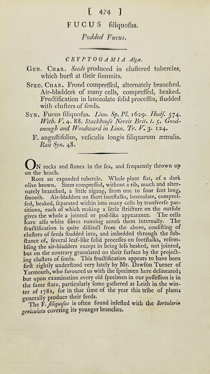 Antique Print - James Sowerby - Fucus Filamentosa - Threadlike Fucus - F1