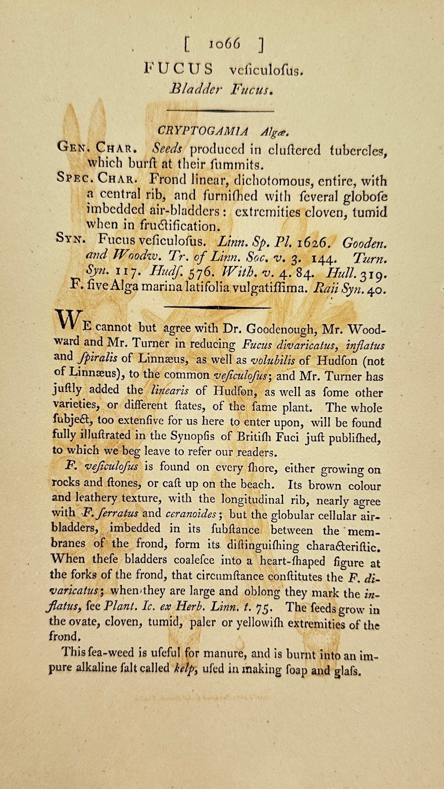 Antique Print - James Sowerby - Fucus Veficulofus - Bladder Fucus - F1
