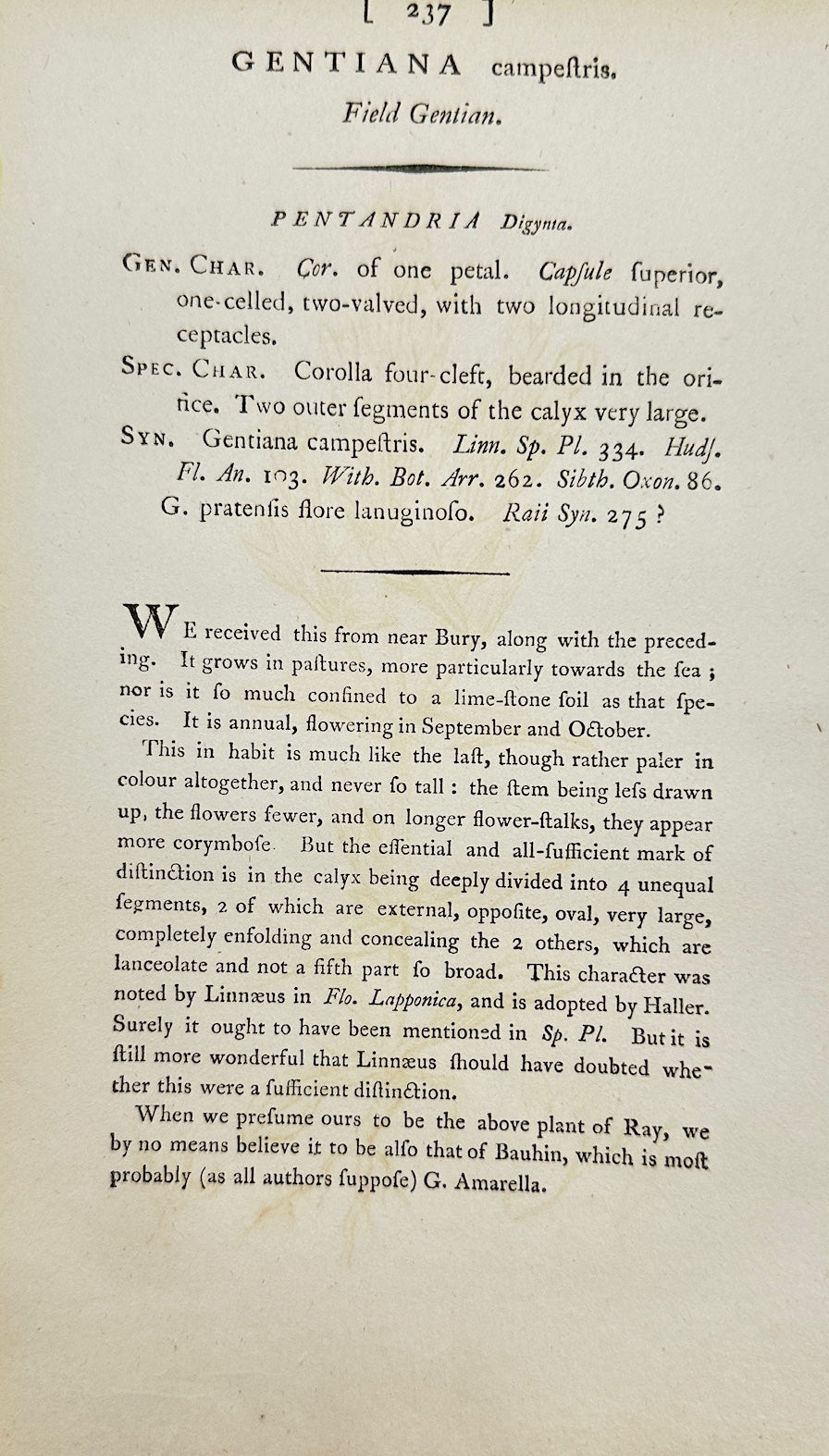 Antique Print - James Sowerby - Gentiana Campestris - Field Gentian - F1